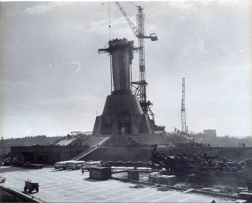 Монтаж блоков скульптуры "Родина-мать" краном БК-900
