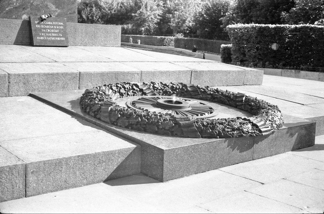 Вечный огонь у подножия обелиска