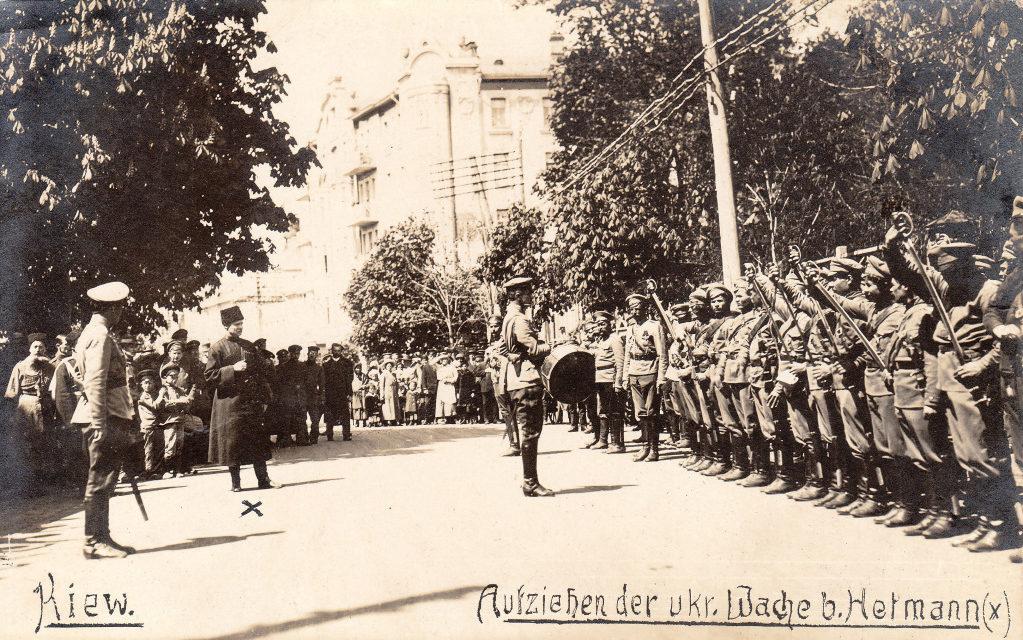 Кавалеристы армии Украинской Державы перед гетманом Скоропадским