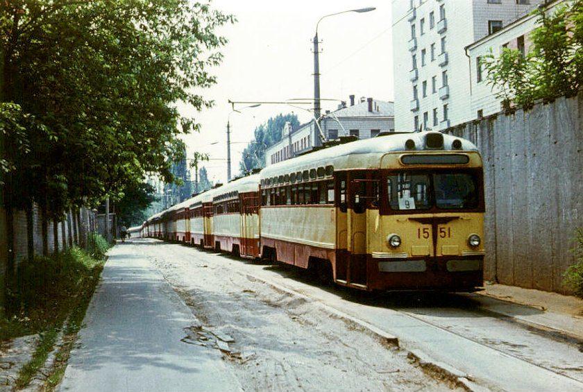 Внепиковый отстой трамваев у забора Лукьяновского депо