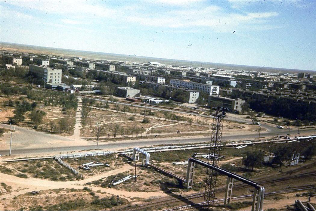 Ленинск (Байконур), вид с ТЭЦ на парк Мира