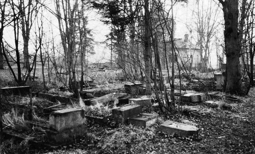 Česká Lípa, nový židovský hřbitov, v pozadí obřadní síň a hřbitovní brána