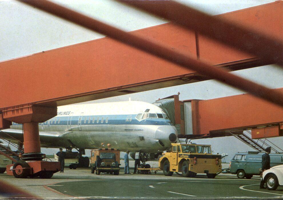 Аэропорт Ганновер. Самолёт DC-8 у телескопического трапа