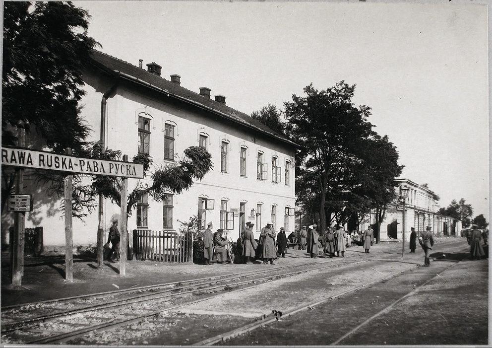 Рава-Русская. Солдаты у временной станции