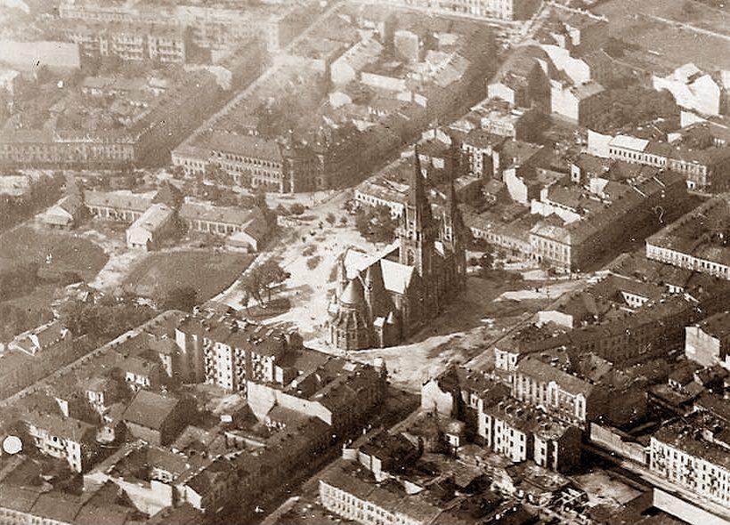 Панорама. Костёл свв. Ольги и Елизаветы. Базар братьев Гредлив
