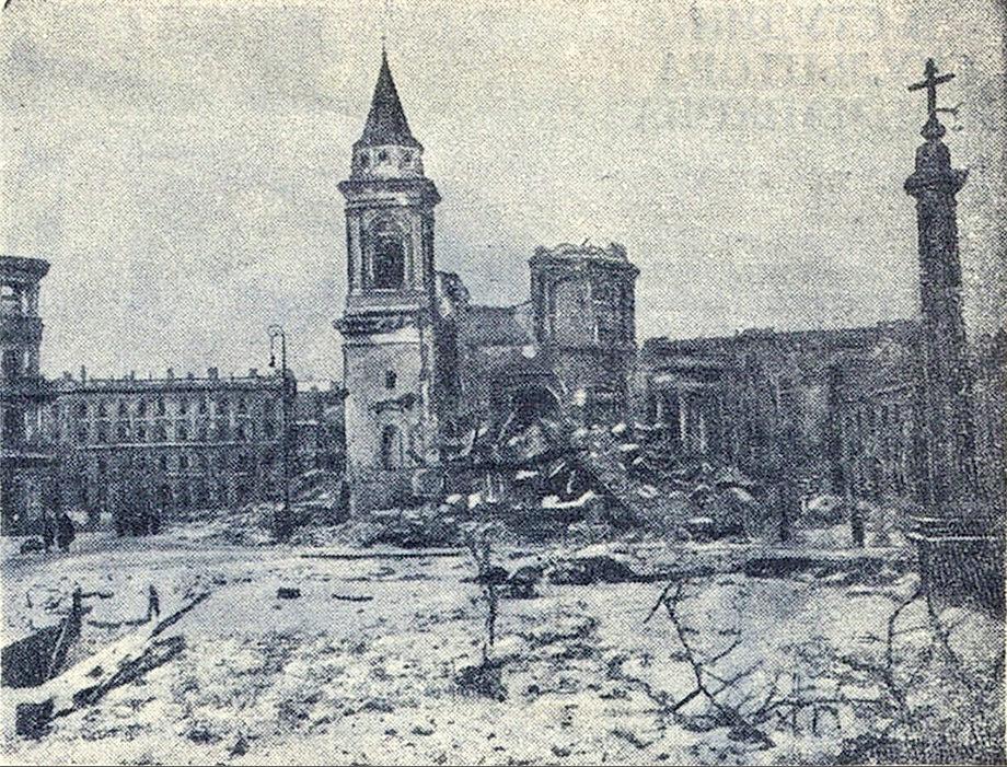 Площадь Трёх крестов (Plac Trzech Krzyży) с разрушеным костёлом