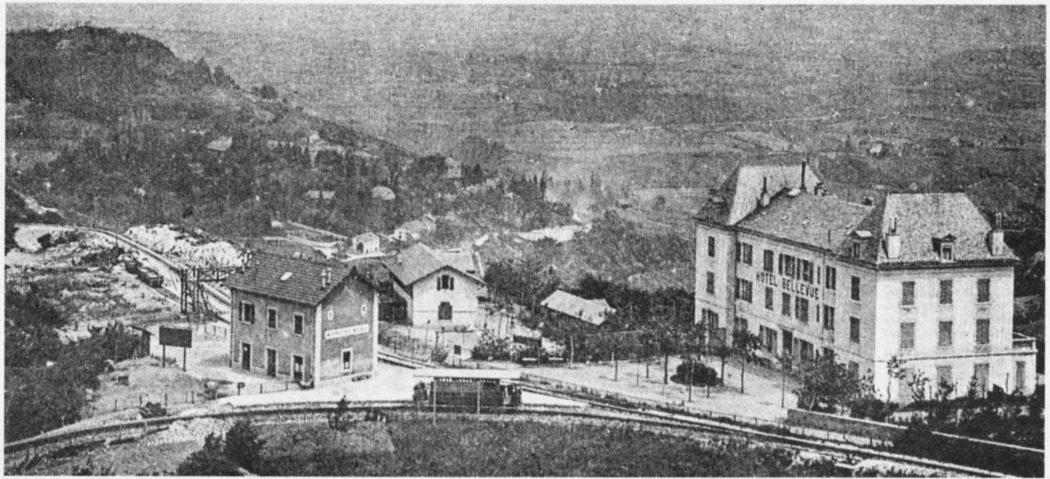Haute-Savoie. La gare centrale de Monnetier-Mairie et Grand hôtel Bellevue