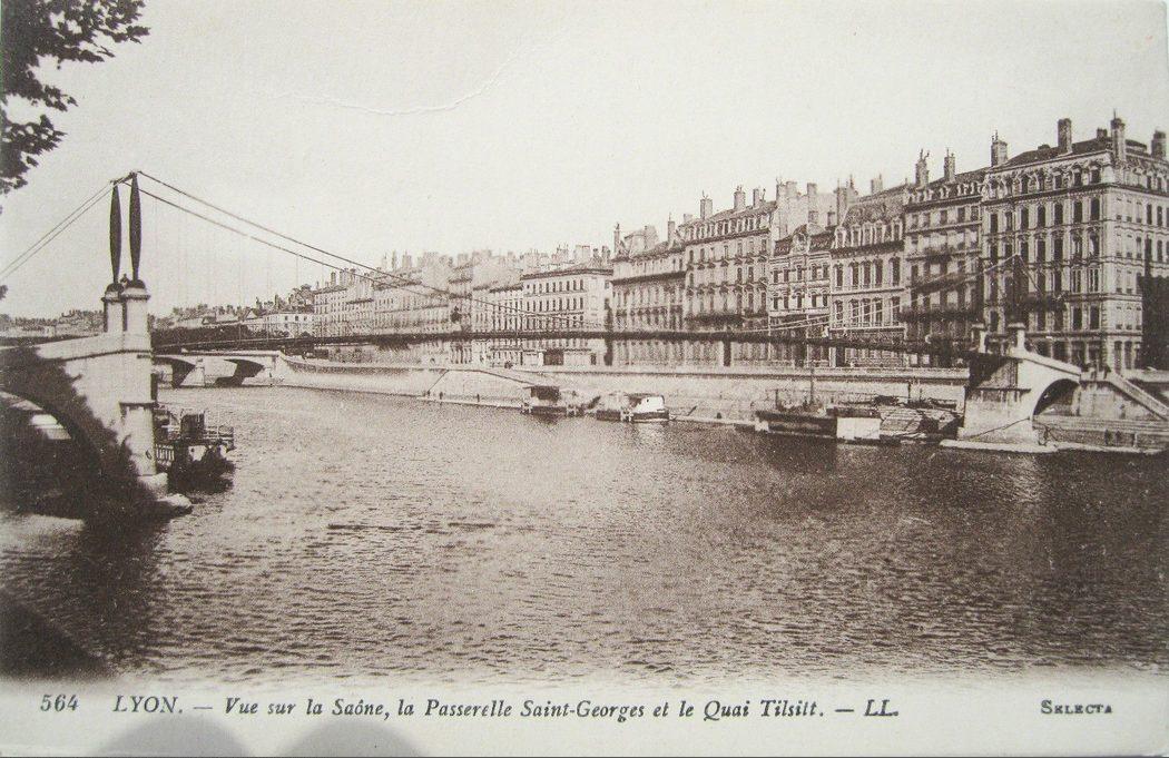 Lyon — Vue sur la Saône, la Passerelle Saint-Georges et la quai Tilsitt
