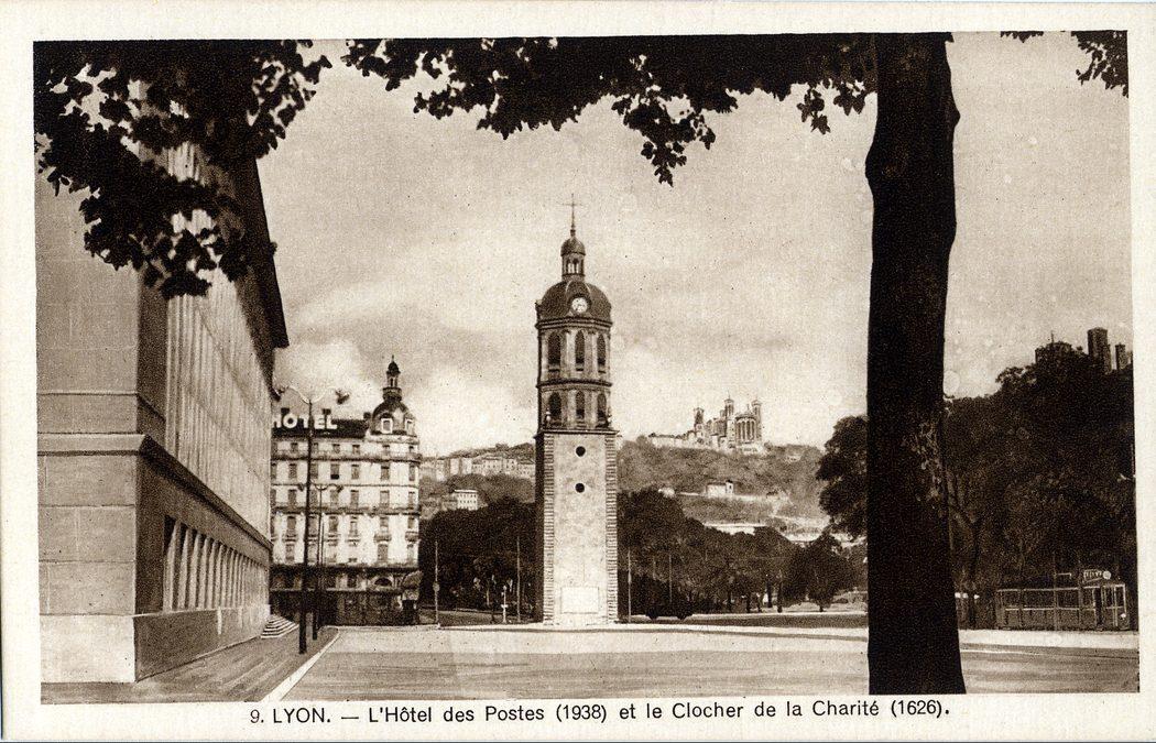 Lyon — L'hôtel des Postes (1938) et le Clocher de la Charité (1626)