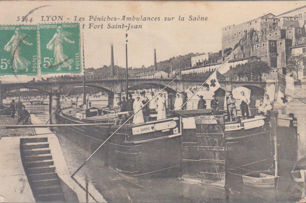 Lyon — Les Péniches Ambulances sur la Saône près du Fort Saint-Jean