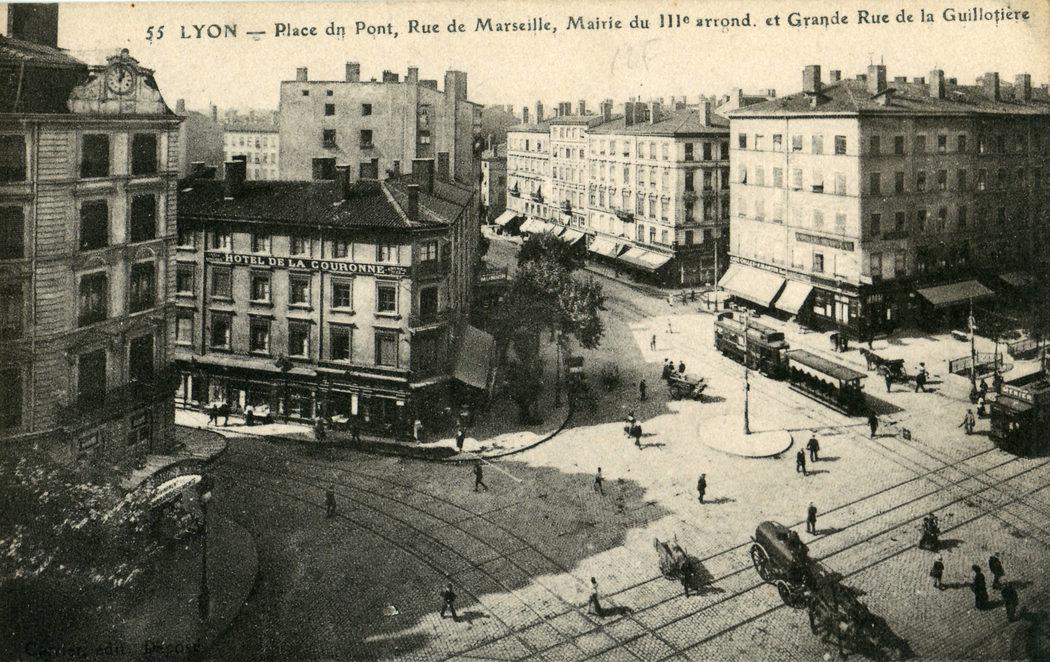Lyon — Place du Pont, Rue de Marseille, Mairie du IIIe arrondissement et Grande rue de la Guillotière