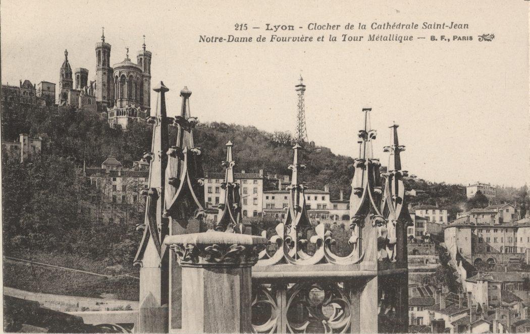 Lyon — Clocher de la Cathédrale Saint-Jean ; Notre-Dame de Fourvière et la Tour Métallique