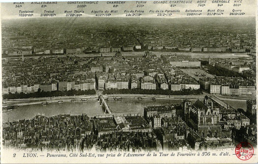 Lyon — Panorama, Côté Sud-Est, vue prise de l'Ascenseur de la Tour de Fourvière à 376 m. d'alt