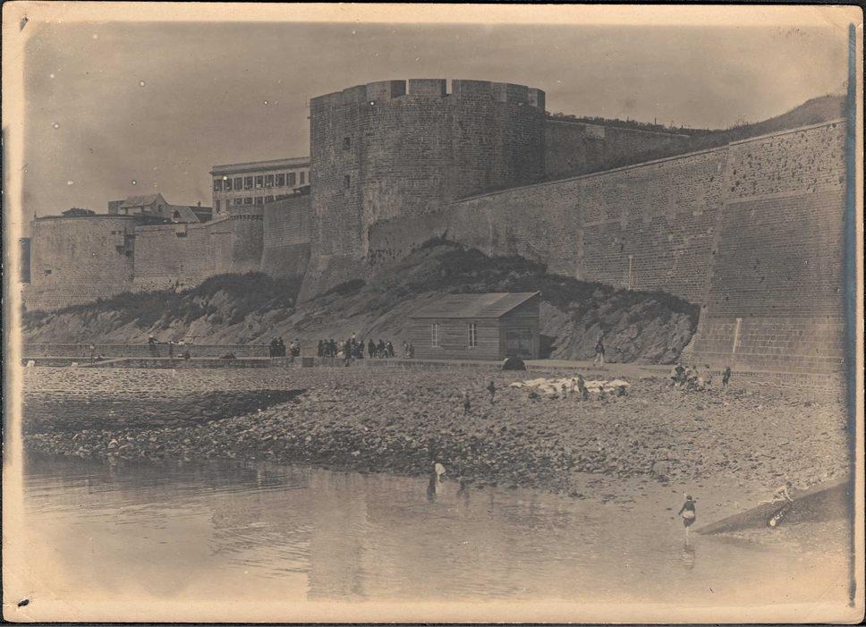 Vue générale des murs, au pied la grève
