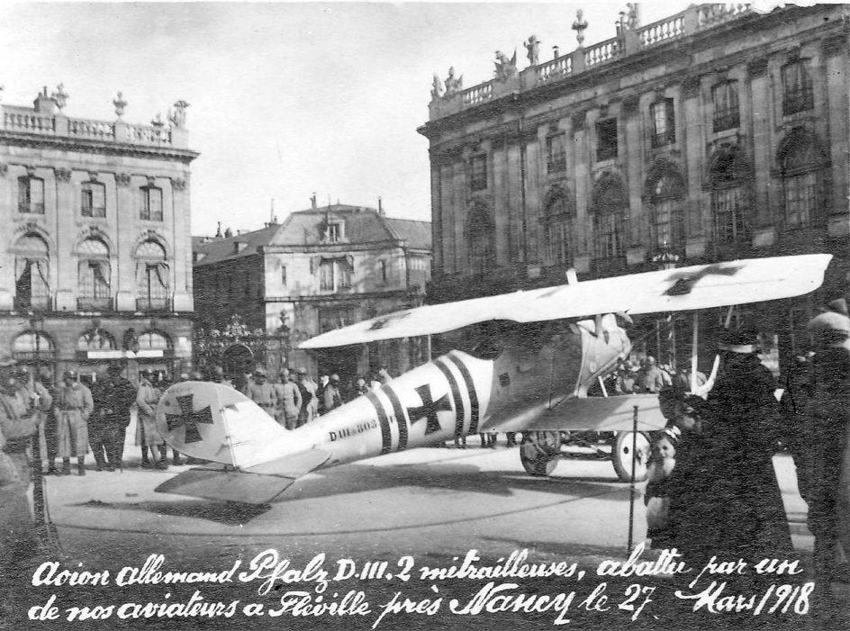 Place Stanislas: avion аllemand Pfalz D.III, abattu par aviateur français près Nancy