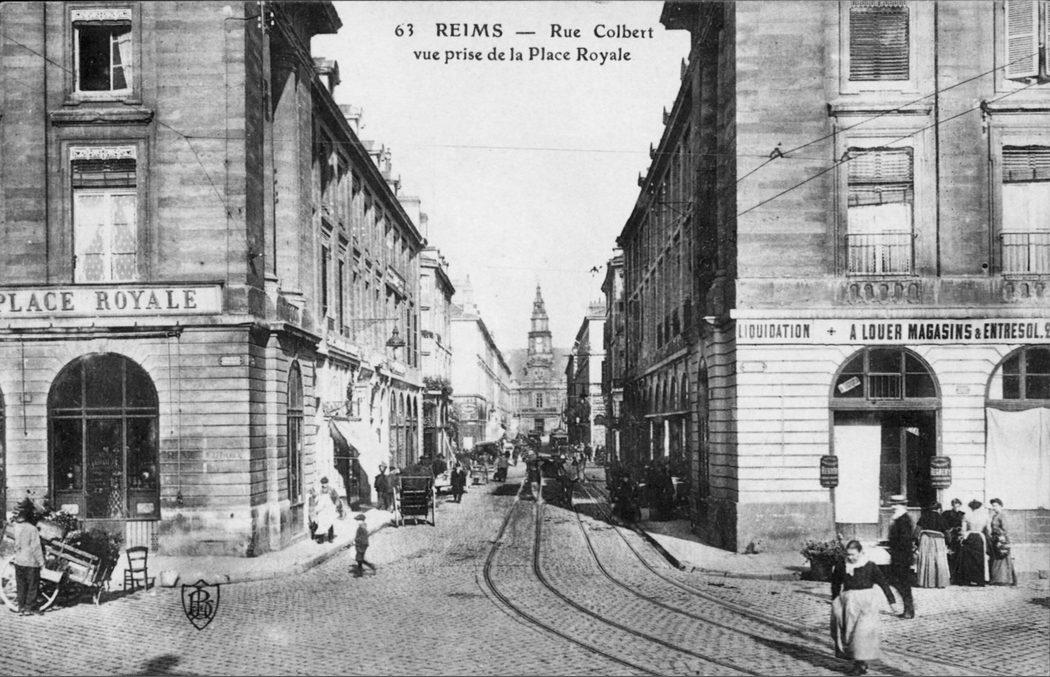 Reims. Rue Colbert vue prise de la Place Royale
