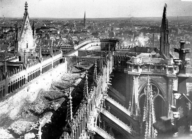 Notre-Dame de Reims. Vue extérieure de la nef et du transept sud dépourvus de toitures
