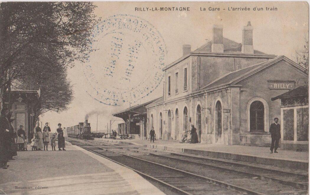 Rilly la Montagne - "The railway station: a train arrival."