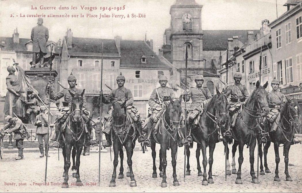 La cavalerie allemande sur la Place Jules-Ferry, à St-Dié