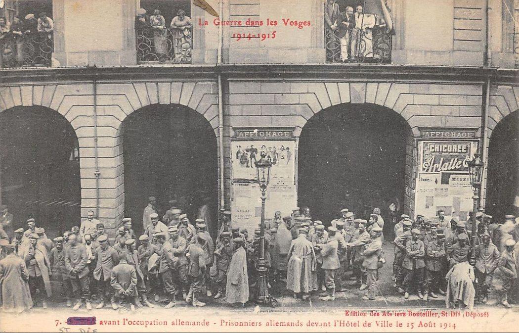 Saint-Dié avant l'occupation allemande. Prisonniers allemands devant l'Hôtel de Ville