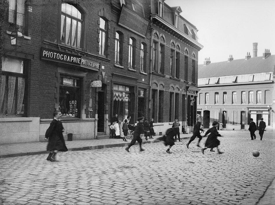 Rue du Moulin. Enfants jouant au football