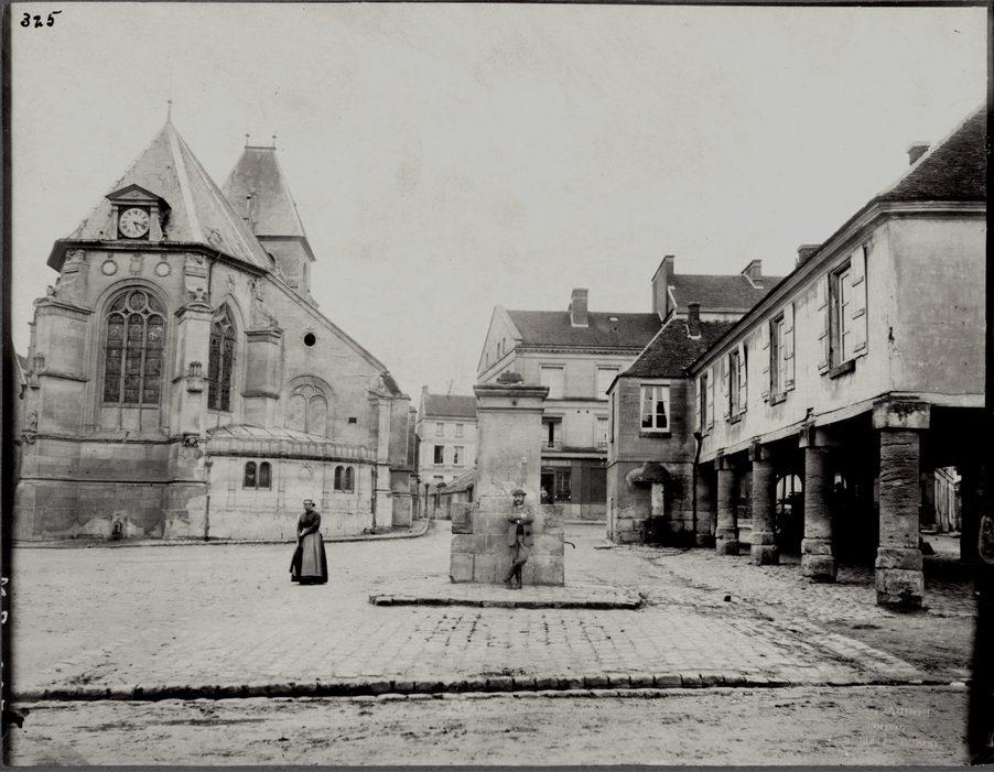 Vue de l'église, la place de la ville et de l'hôtel de ville de Neuilly-en-Thelle