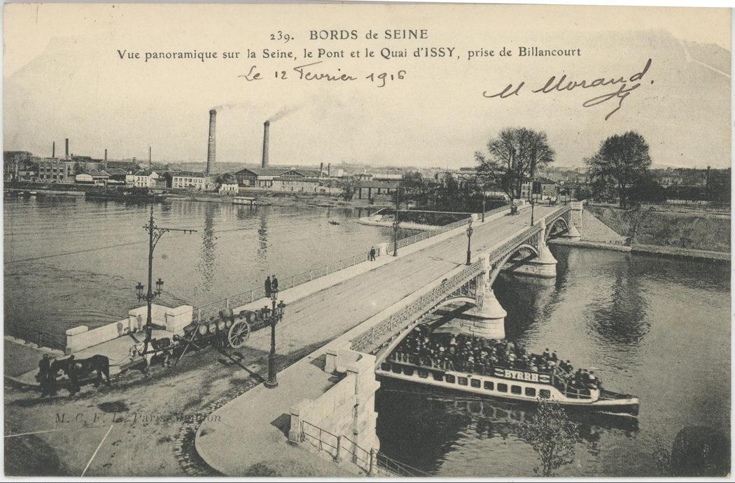 Vue panoramique sur la Seine, le Pont et le Quai d'Issy, prise de Billancourt
