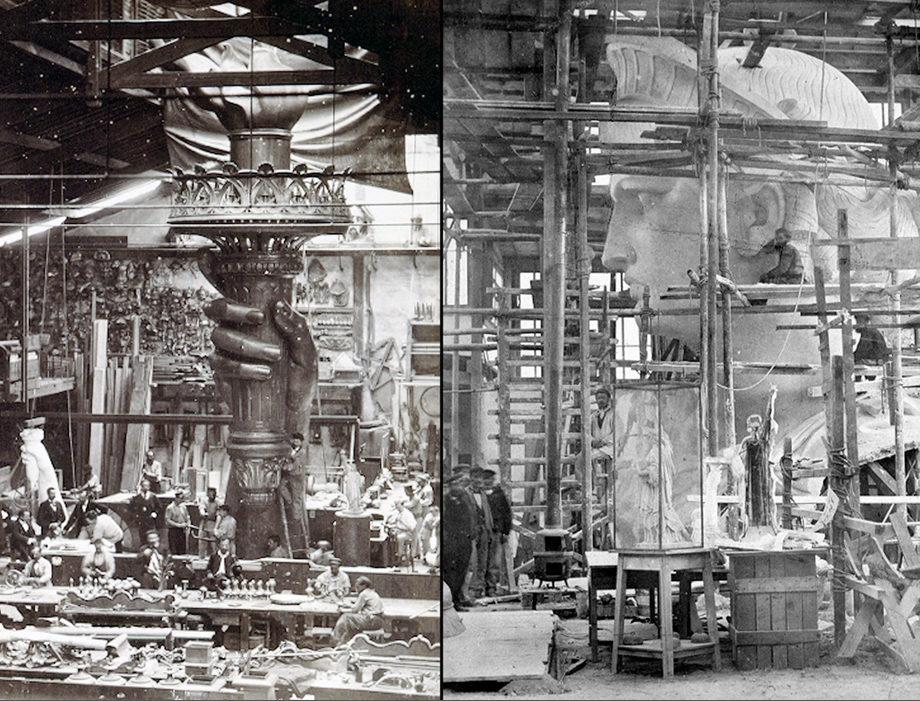 Some parts of the Statue of Liberty inside a Paris studio