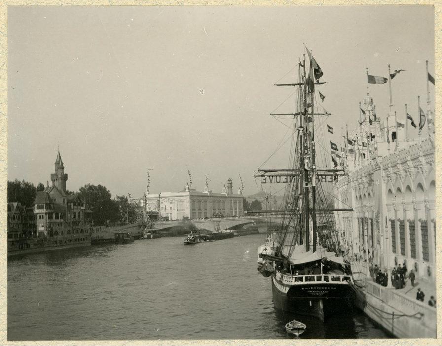 Exposition Universelle de 1900: voilier amarré devant le palais des armées de terre et de mer