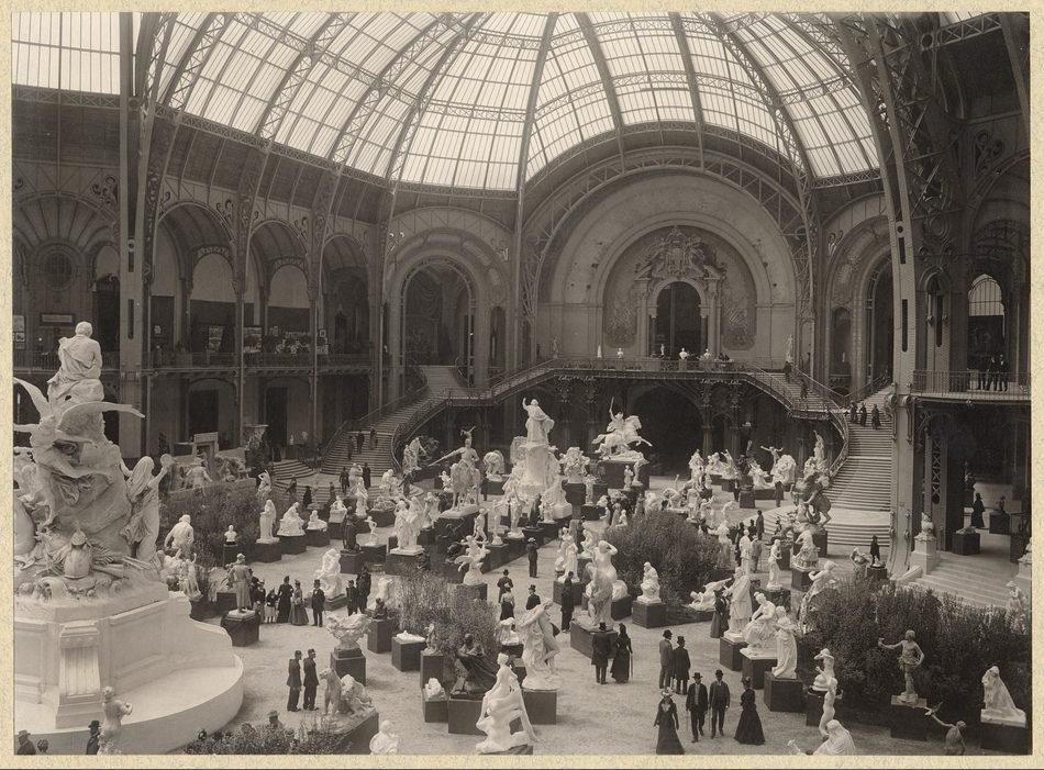 Exposition Universelle de 1900: les sculptures au pied de l'escalier d'honneur du Grand Palais
