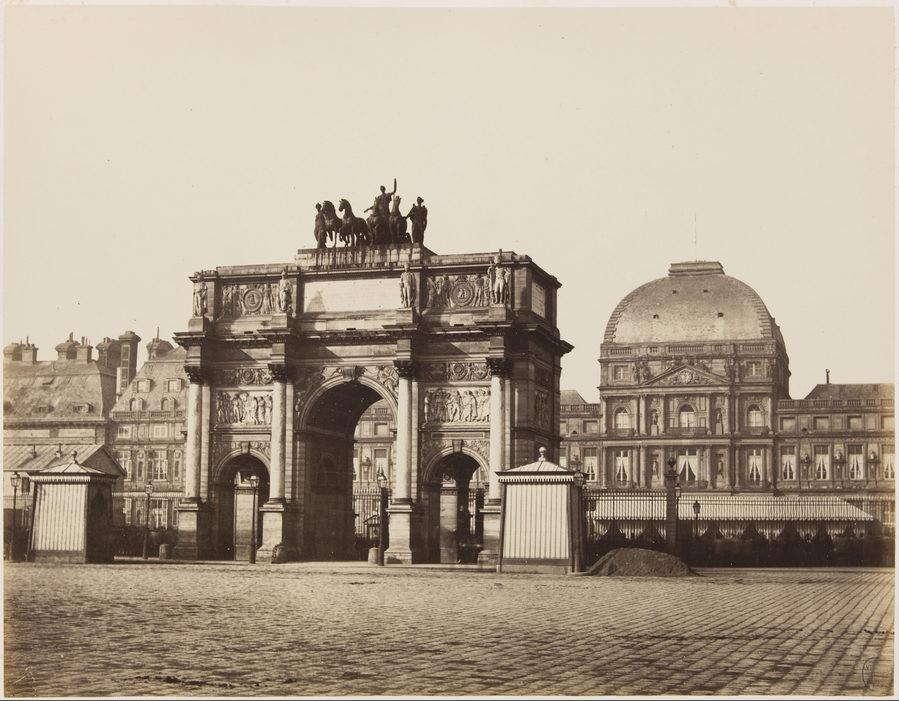 L'Arc de Triomphe du Carrousel ; au second plan, le Palais des Tuileries