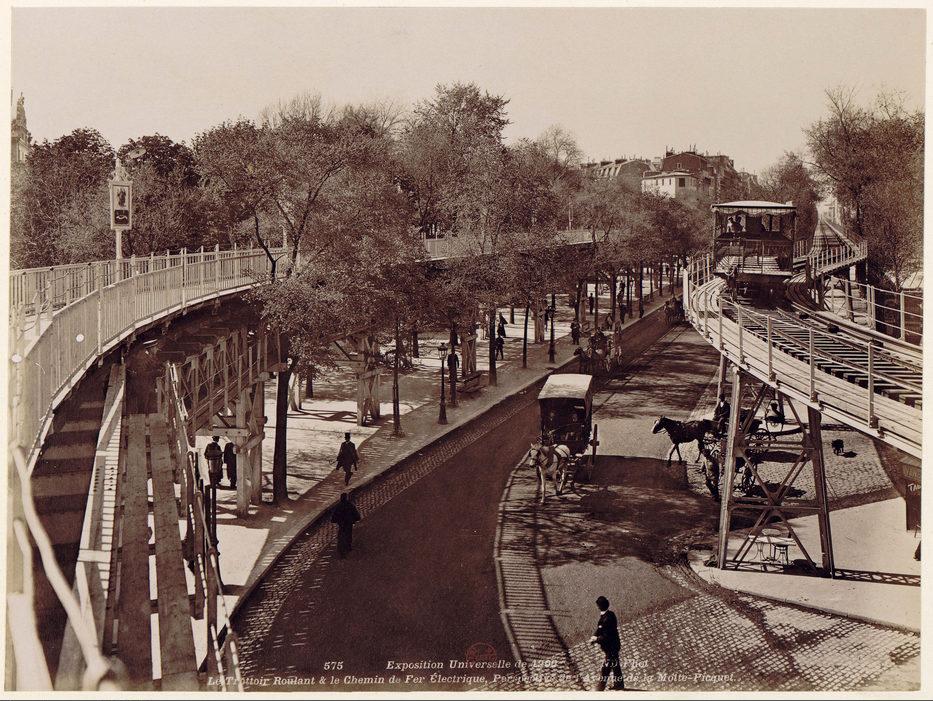 Exposition Universelle de 1900: le Trottoir roulant et la Ligne du Chemin de Fer Électrique