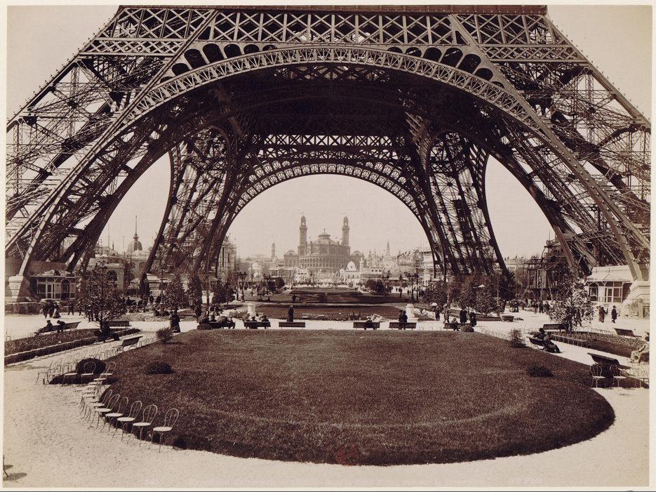 L'exposition universelle de 1900: la Tour Eiffel, le palais du Trocadéro en arrière-plan