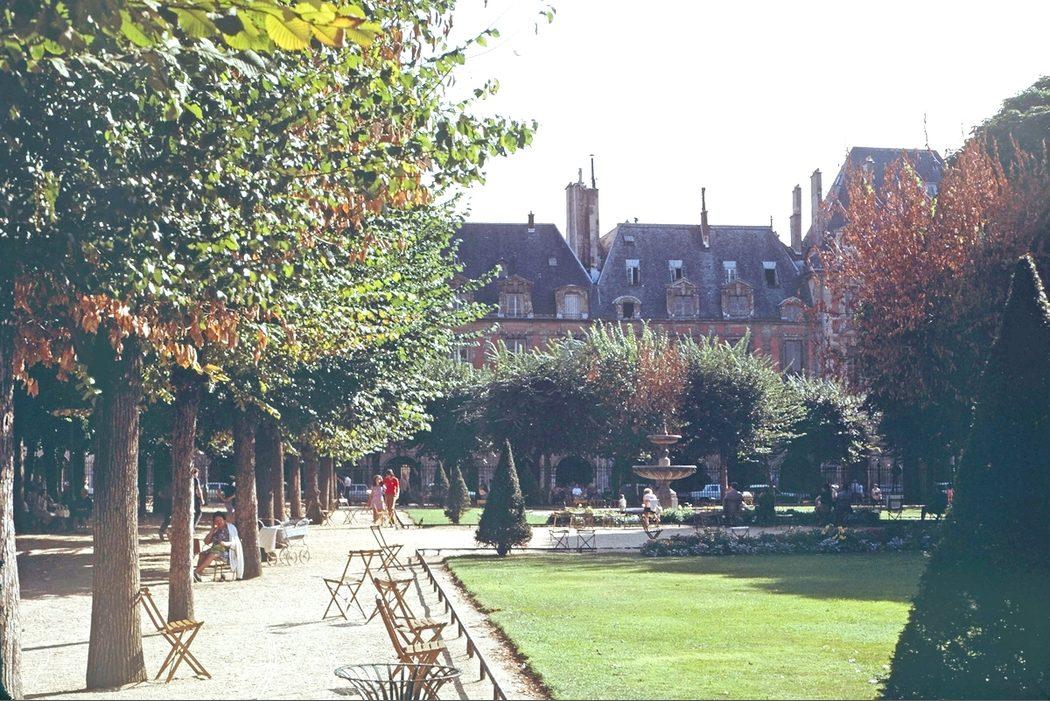 Vue du square Louis-XIII, au centre de la place des Vosges