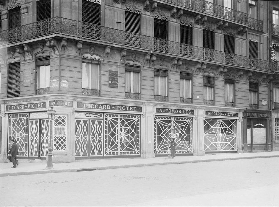 Angle de l'avenue des Champs-Elysée et de la rue Marbeuf : protection des magasins