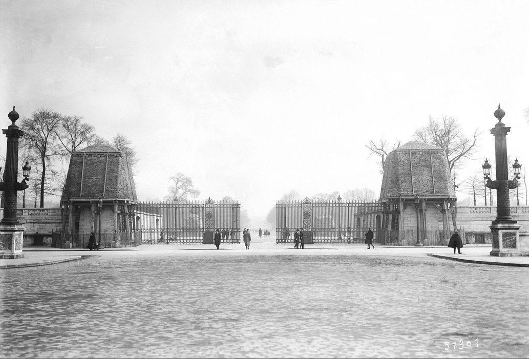 Statues à l'entrée du Jardin des Tuileries protègées contre les bombardements