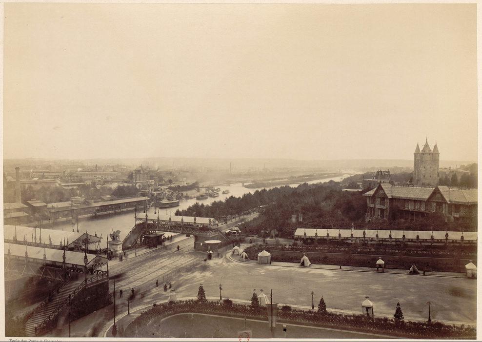 Exposition universelle de 1889: Pavillon des Travaux publics, vue générale vers l'aval