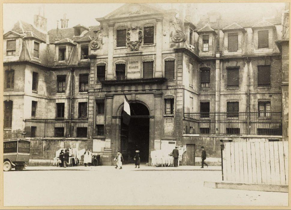 Porte d'entrée et façade principale de la prison Saint-Lazare, maison d’arrêt pour femmes