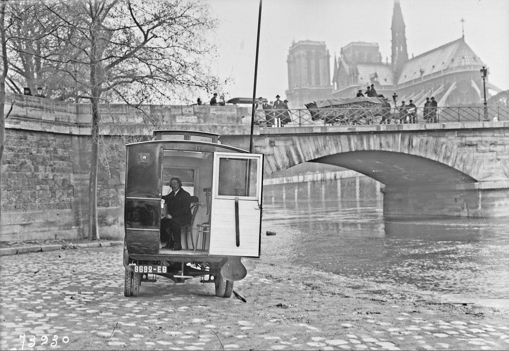 Expériences de TSF par la police parisienne, près du pont de l'Аrchevêché