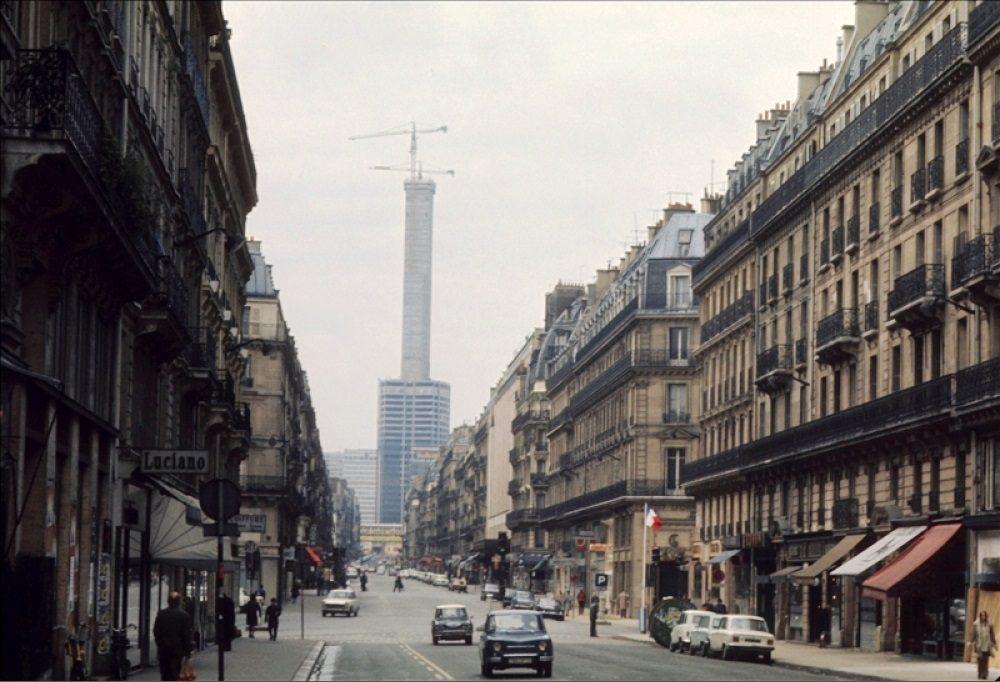 Construction de la tour Montparnasse, vue de la rue de Rennes