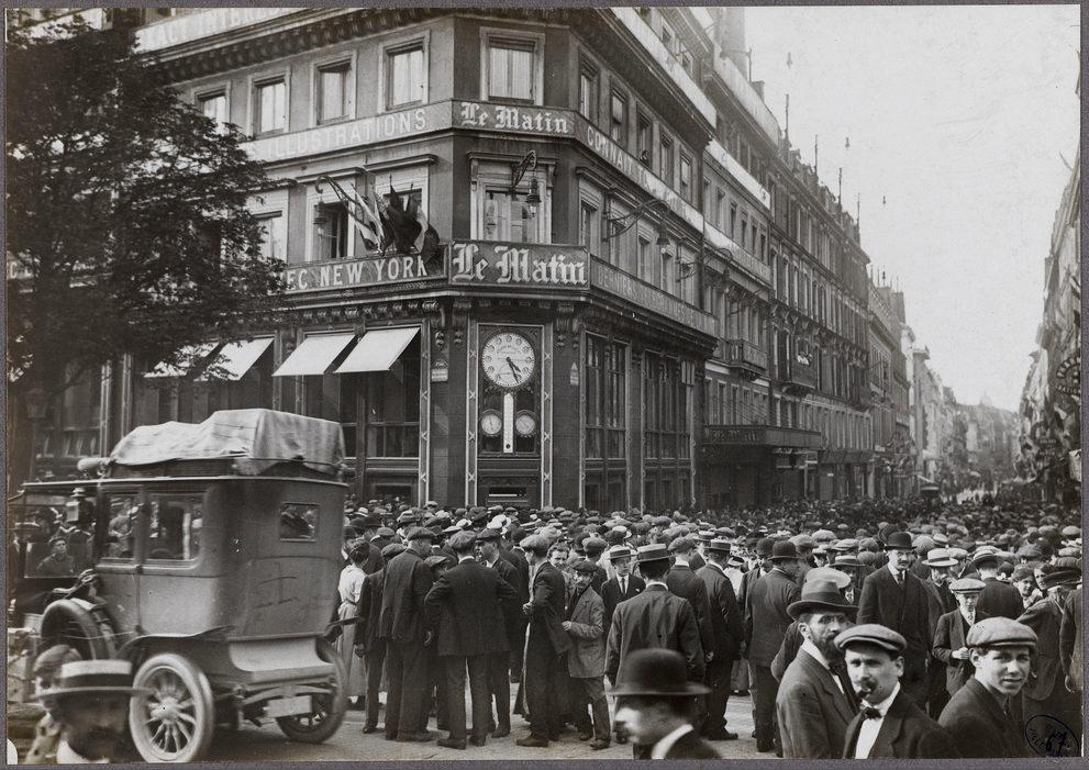 Devant le jounal Le Matin [boulevard Poissonnière]