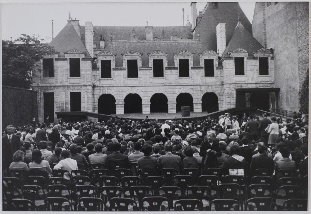 Festival du Marais, une scène de théatre est montée devant la façade de l'hôtel de Sully