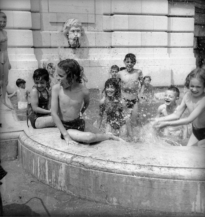 Enfants se baignant dans un bassin de Montmartre