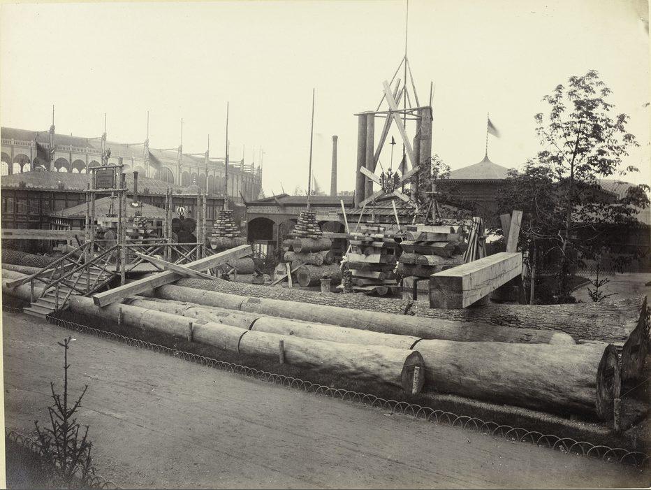 Exposition Universelle de 1867. Parc Autriche : exposition de bois bruts