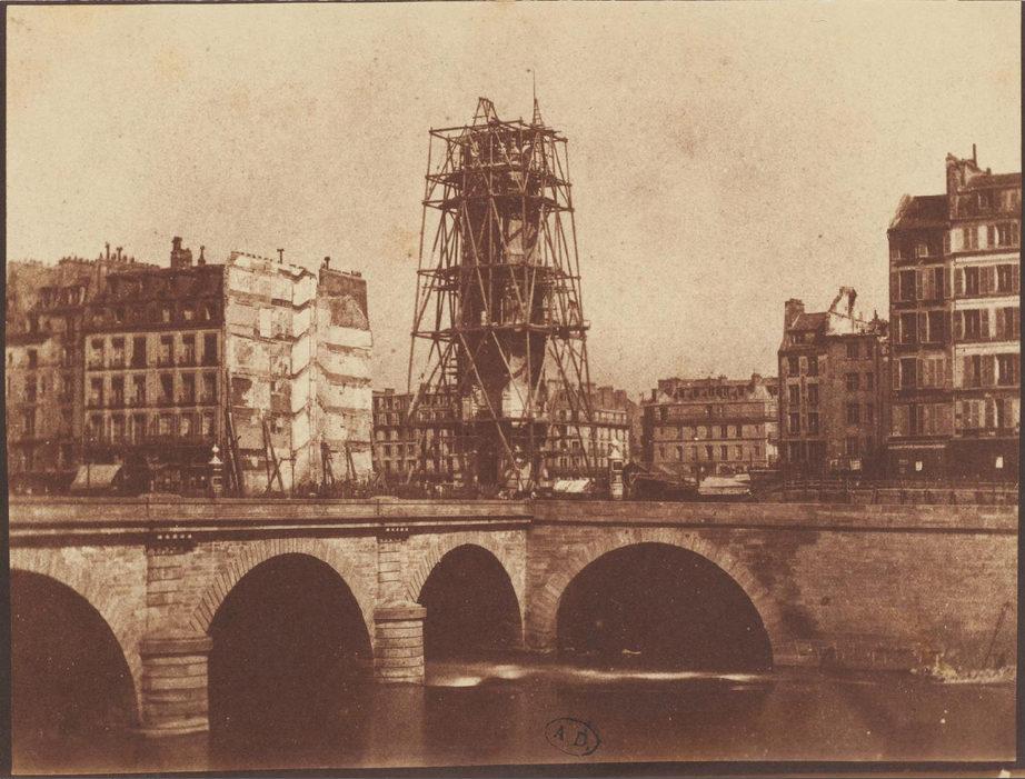 La tour Saint-Jacques sous les échafaudages vue du Pont Notre-Dame