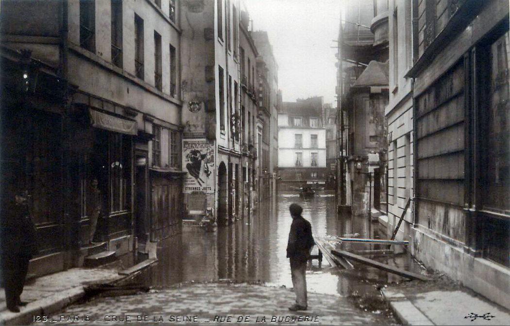 Paris inondé. Rue de la Bûcherie