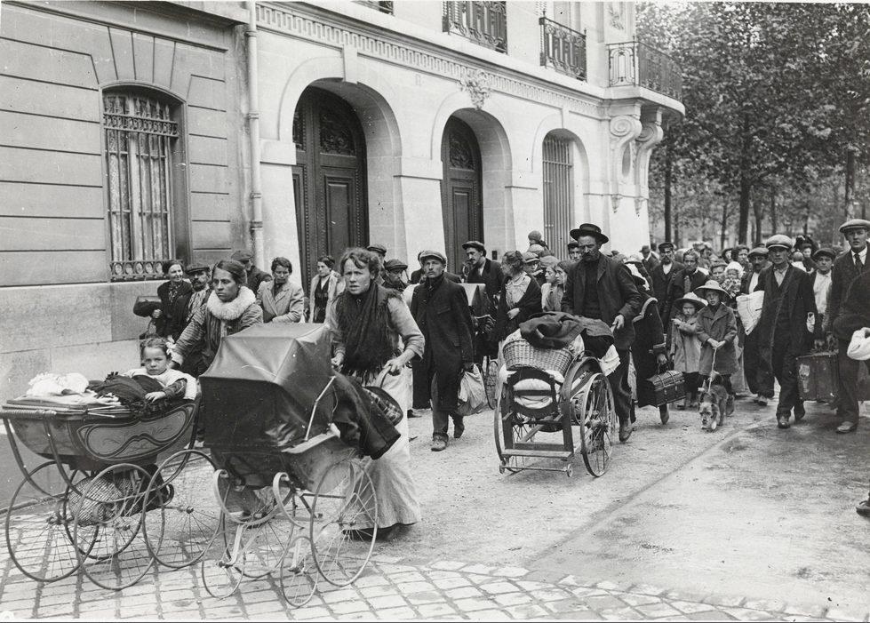 Groupe de réfugiés arrivant boulevard de la Tour Maubourg