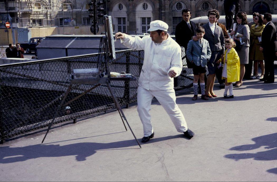 Peintre vêtu de blanc sur le pont des Arts