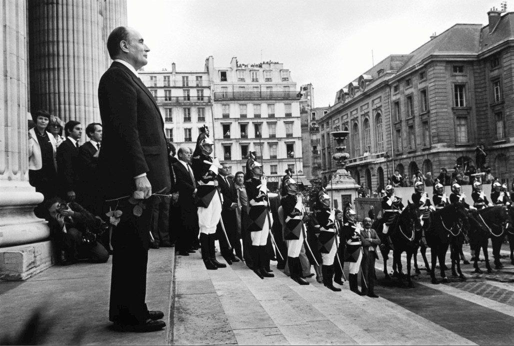 Новый Президент Франции Ф.Миттеран с розой в руке на ступенях Пантеона