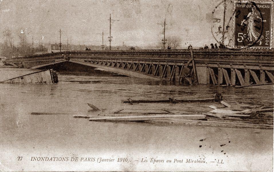 INONDATIONS DE PARIS (janvier 1910)- Les Epaves au Pont Mirabeau